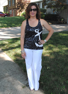 If you ever thought sequins were too much for daytime, think again! Paired with white pants and silver pumps, this top keeps the whole look casual. The sequins simply add a mid week punch! I have big plans for this anchor and it's won't be thrown overboard!